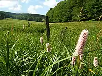 湿性草地。半湿地の草地で、一年の大半を通して水に浸っています。水はけの悪い土地である、雨水や雪解け水が大量に流れ込む、水辺に位置しているなどの理由によって形成されます。 | ![]() |
