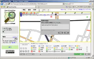 データを入力したら、そのデータをopenstreetmapのサーバに書き戻しましょう。この作業は、画面右下の保存ボタンを押すことで実行出来ます。ボタンをクリックすると、変更点を記述するダイアログボックスが表示されます。このダイアログボックスに必要事項を記入します。openstreetmapはワールドワイドに使うものですので、記述は英語がよいでしょう。十分に画面上の変更内容を確認した後にOKボタンをクリックしましょう。一瞬アップロード中というポップアップ画面が表示された後、アップロードに成功しました。というメッセージが画面上に表示されます。これでデータがサーバに書き戻されました。