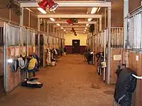 | 厩。馬をつないでおくための建物または建物の一部。 |