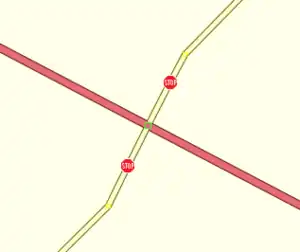 進入道路上の停止線は単一の進行方向にのみ適用されるので、その方向は優先交差点までの距離が短い方を見つけることで推定できます。しかしながら、一時停止標識の中には近接した合流点間の双方向の通り上にあることが稀にあるため、一時停止する進行方向を識別する必要があります。その場合には、highway=stopノードを含むウェイの「OSM上の順方向/逆方向」に対する一時停止する方向に関してdirection=forward あるいは direction=backwardを使用して対処することができます。