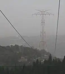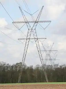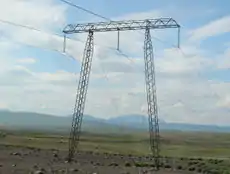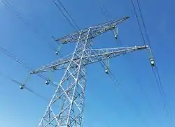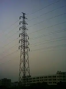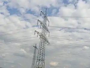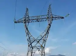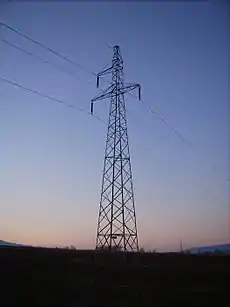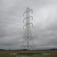 高圧の送電線を支える塔や柱です。ふつうは、鉄の骨組みで造られています。 Edit or translate this description.