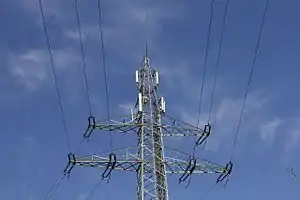 line_management transpose 電力線のキャパシタンスやインピーダンスのバランスのために相の位置を入れ替えている送電塔。
