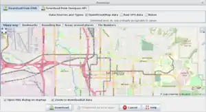 Welcome to the JOSM guide. This guide is split across several tabs (above), starting with an introduction aimed at new users. The text assumes some knowledge of OpenStreetMap concepts, and focuses entirely on using JOSM, not other tools. As such, some users may prefer the general Beginners' Guide or learnosm.org (which also offers JOSM tutorials). You can also see the official JOSM introduction. Starting JOSMDownload and run the jar using Java: josm-tested.jar Don't like jar files? Click this java web-start link instead. For operating system specific installation steps or troubleshooting tips see JOSM/Installation. When JOSM starts up, the main editing space displays some text. This can include important announcements, but really we want to see some map data … Download dataClick the download toolbar button ( ![]() Slippy map tab of the download dialog Finally, use the left mouse button to drag a box around the area you want to download. You should download an area encompassing the editing you will be doing, but avoid downloading too much map data (the OpenStreetMap server will take a long time to respond, and JOSM may slow down or run out of memory) You probably want to zoom right in close to the maximum zoom level. Pick a handful of streets around the area you are interested in. Start small, because you can download more data as you need it. When you click After downloading some data, it may be a good idea to do a validation run on the downloaded data. It is common that this will trigger many warnings or even errors - and it is good to know which errors are in the data before you start editing it. Zooming and PanningWithin the main editing area, you can pan around and zoom in and out.