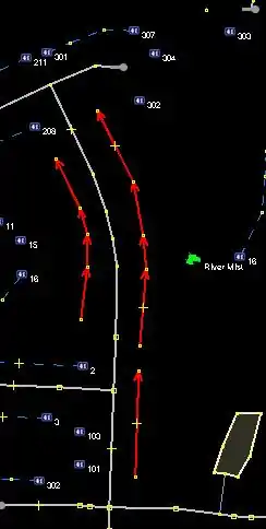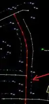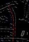 - Draw the Address interpolation way(s) as required for the street - shown selected in the image to the right. Be sure the Address Interpolation ways follow the numbering - start drawing in a direction from the lowest number towards the highest number.