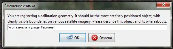 Click the first button, obviously. Then the description, this time — of an object itself (for identifying it on other imagery). "An intersection of a canal and German Street" it is: