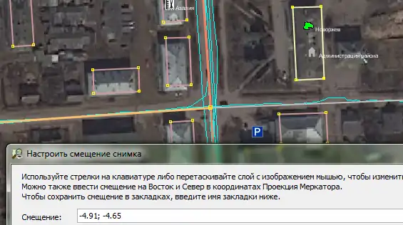 Next steps are obvious: move the imagery layer so that geometry aligns perfectly with the corresponding features: