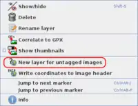 The plugin adds a menu item to photo layers. The menu item New layer for untagged images moves all photos without GPS coordinates to a new layer Untagged Images. This makes it easier to work only on the untagged photos.