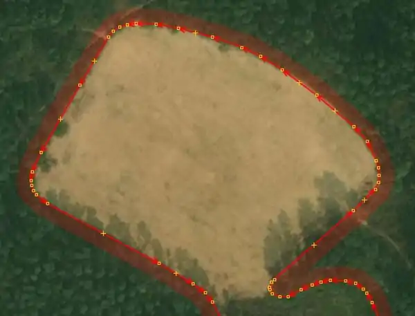 The same polyline after removing of points with simplify way tool with 25 cm tolerance: