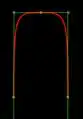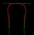 Note: Keeping CTRL button pressed, you can modify the tangents. Point nr. 1 in the example below has different angles and lengths left and right Point nr. 2 two different lengths left and right: