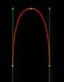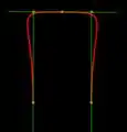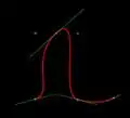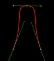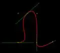 Green lines are tangents with control points at ends, red line is the resulting spline: