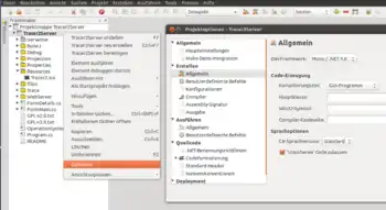When running a project MonoDevelop automatically builds the project and creates an executable file Tracer2Server.exe in directory tracer2server-code/trunk/src/bin/Debug. This executable can be used to launch Tracer2Server as a standalone application, i.e. MonoDevelop is not needed anymore. Simply copy this file to a suitable location. You may also use "Create" -> "Tracer2Server" in the menu to create the .exe file.