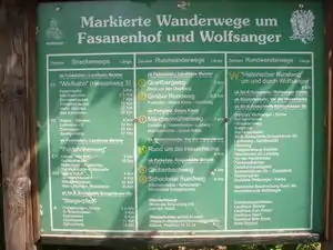 Tafel mit einer Auflistung der Wanderwege in und um Kassel-Wolfsanger