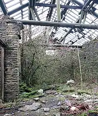 | A building which has been abandoned and is no longer functional due to serious damage to roof or walls, but which is still visible in the landscape. |