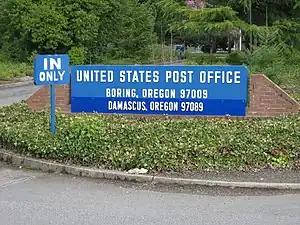 A post office's sign usually indicates the recommended postal cities and ZIP codes served by the post office.