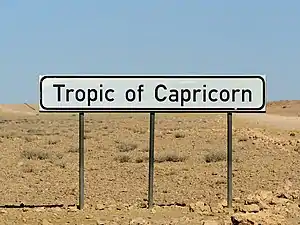 | attraction | tropic | The Tropic of Capricorn is the circle of latitude that contains the subsolar point at the December solstice. It is thus the southernmost latitude where the Sun can be seen directly overhead. It also reaches 90 degrees below the horizon at solar midnight on the June Solstice. Its northern equivalent is the Tropic of Cancer.