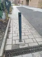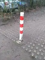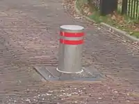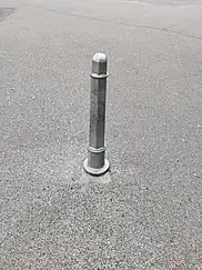 | bollard=foldable | A bollard which can be rotated so it lays on the ground and vehicles are then able to pass it. Some kind of key or wrench might be needed. This bollard can easily be moved back to its previous position with no damage left. | ![]() |