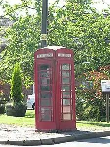 | K2 | Large cast iron phone box, mainly only found in London, is larger than the more common K6 and has 18 portrait orientated window panes per side compared to the landscape orientated window panes found in the K6. | ![]() K2 phonebox (right) next to K6 phonebox (left) | |