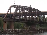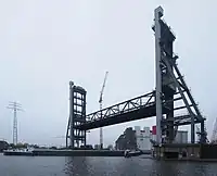 | bridge:support=pivot_pier | A support for a movable bridge on which the bridge pivots, either horizontally (as a swing bridge) or vertically (as a bascule or drawbridge). | ![]() |