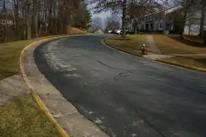 An unmarked crossing with sloped kerbs.