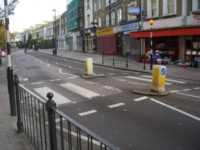 This is the most common type of crossings in dense urban areas of cities (at least in Europe), but sometimes used also in smaller towns or villages, more rarely used in residential areas with low traffic. On large enough streets, they are frequently equipped with a separation islands (see below) where crossers can rest: crossing the street is then performed in two steps, with distinct traffic lights for pedestrians for each side of the street, so the crossing zigzags on the central island and its footway is sometimes restricted by barriers.