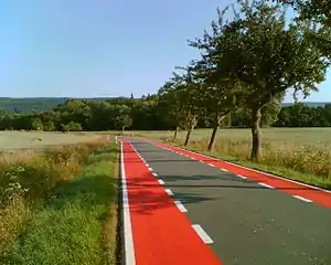 | Cycle lanes or tracks provided within the carriageway or next to it, the same in both directions. |