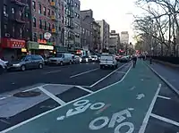 Cycleway infrastructure on the right side of the road, referring to the way direction.