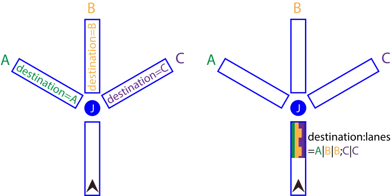 destination:lanes=* tagging
