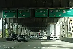 Per-lane destinations (both signs and pavement markings) in the United States