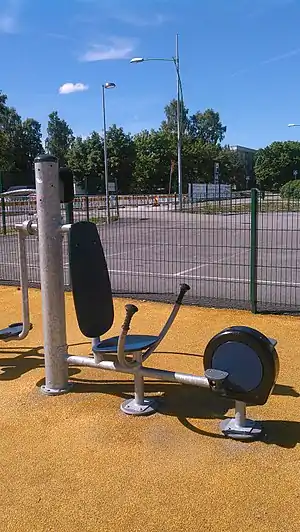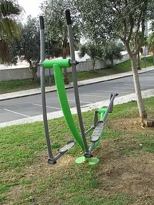 | fitness_station=elliptical_trainer | A fitness station for cardiovascular exercise, a.k.a. cross trainer. | ![]() |