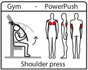 | fitness_station=chest_press | A chest press - push bars away, usually with seat. | ![]() |