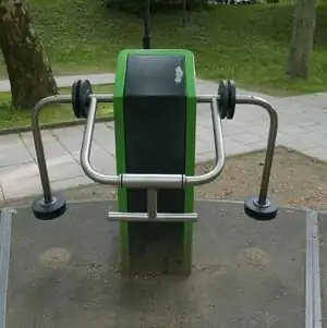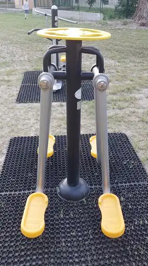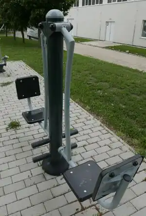 | fitness_station=air_walker | A fitness station with two swinging feet platforms and support bar for hands. | ![]() |