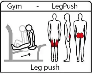 | fitness_station=leg_press | Leg press also known as leg push. Squats in a sitting position. | ![]() |