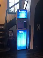 fountain=bottle_refill | Tag indicates a generic drinking fountain type which jets the emitted water downwards at lower pressure than a fountain=nozzle, intended to fill reusable drinking bottles. It may be difficult to obtain water directly in hands or mouth in some cases, due to features such as a large bottle sensor to activate the flow, or a recessed water nozzle. These seem to be increasingly common at transport, leisure and health facilities in GB. Should always have bottle=yes. If it is part of the same installation as a fountain you can drink directly from, use fountain=bubbler and bottle=yes in preference to creating multiple points. |