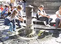 fountain=drinking | Tag indicates a generic type of drinking fountain. If your fountain can be described with a more specific tag (e.g. fountain=bubbler), you are encouraged to use the more specific type. note: some people (fewer instances) use fountain=drinking_fountain with the same meaning. To reduce tag fragmentation you are encouraged to use the documented variant.. Picture: drinking fountain at the Bolsena lake in Italy. |