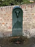 fountain=roman_wolf | Tag indicates a particular drinking water fountain style in Rome. It is a drinking fountain which is typical for dog parks but can also be found elsewhere. The water comes off an iron cast wolf's head and there is generally a small trough where animals can drink. The fountain itself is made from travertine. | |