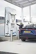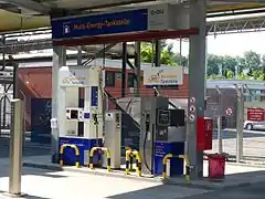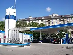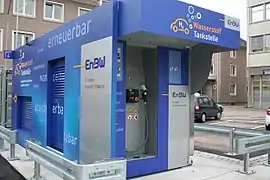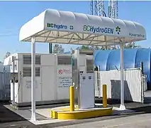 A hydrogen station is a storage or filling station for hydrogen, usually located along a road