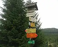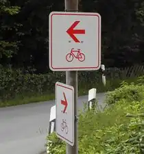 | information | guidepost | Signposts/Guideposts are often found along official hiking/cycling routes to indicate the directions to different destinations. To describe the access to the shown routes or the kind of route use the keys e.g hiking=yes, bicycle=yes, mtb=yes, horse=yes or ski=yes. | ![]() | ||