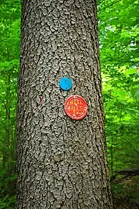 A marker that shows the position of the way of a route. Could be a symbol, a short pole or a painted marking. Note: 2 variant tag values are in use – route_marker and trail_blaze (see Taginfo comparison for the current number of uses or this tag history on taghistory.raifer.tech as a curve chart):