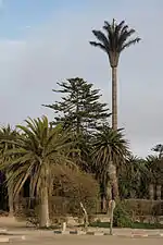 | mimics | palm | ![]() | A palm is a type of tree distinguished by large, compound, evergreen leaves, known as fronds, arranged at the top of an unbranched stem. | |