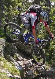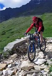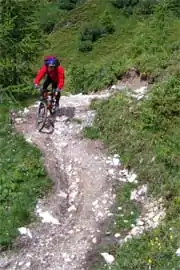 | mtb:scale=2 | Obstacles such as large rocks and stones. Soil is often loose. Steps are expected. Wider hairpin turns, steepness of up to 70%. Requires some advanced riding skills.