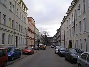 | lane | Parking on the street (which could be easily converted to a travel lane). Mostly used as a value for parking:left=*, parking:right=* or parking:both=* on a street tagged with highway=*. | ![]() |