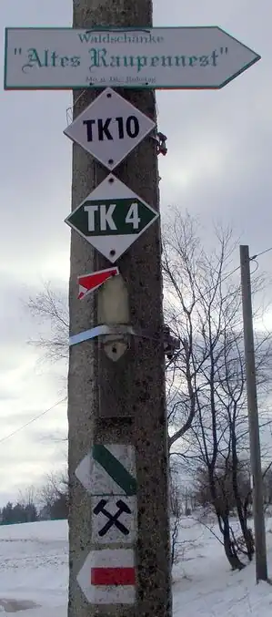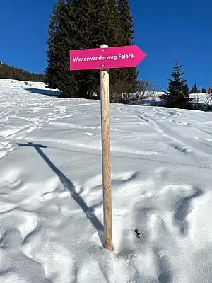 | route_marker=winter_hiking | Direction sign which is related to winter hiking / snow hiking.
