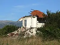 This prefix is used for a feature that is in ruins, with visible traces. May be still useful for navigation and visible in the landscape.
