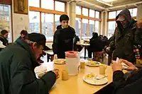 | social_facility=soup_kitchen | A non-residential facility that provides prepared meals, usually to the poor, free of charge or below market price. Other names for this type of facility include meal centre, food kitchen, comedor popular (Argentina), restaurante popular (Brazil), etc. | |
