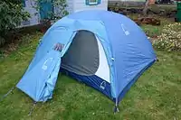tent is a shelter consisting of sheets of fabric or other material draped over, attached to a frame of poles or attached to a supporting rope. While smaller tents may be free-standing or attached to the ground, large tents are usually anchored using guy ropes tied to stakes or tent pegs.