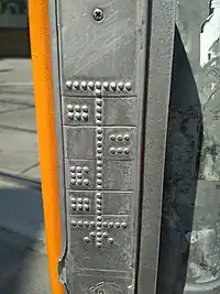 | Indicates that there is a small tactile map at the traffic light pole to indicate the crossing layout for blind persons. |