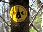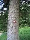 Trail marking made by colorful symbols painted directly on other objects like trees, stones, houses and so on. |