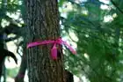 Trail marking made by marker attached to the tree so it should be tagged as tag it as trailblazed=symbols |