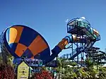 | water_slide=funnel | Riders drop from inside a tunnel out into the ride's main element shaped like a funnel on its side. Riders oscillate from one side to the other until they exit through the back of the funnel and into a splash pool. | ![]() |
