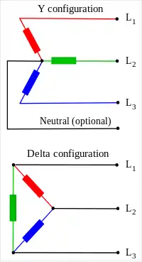 | open-delta | IEC 421-10-03 : The same as delta configuration except the circuit isn't closed at only one corner. | |